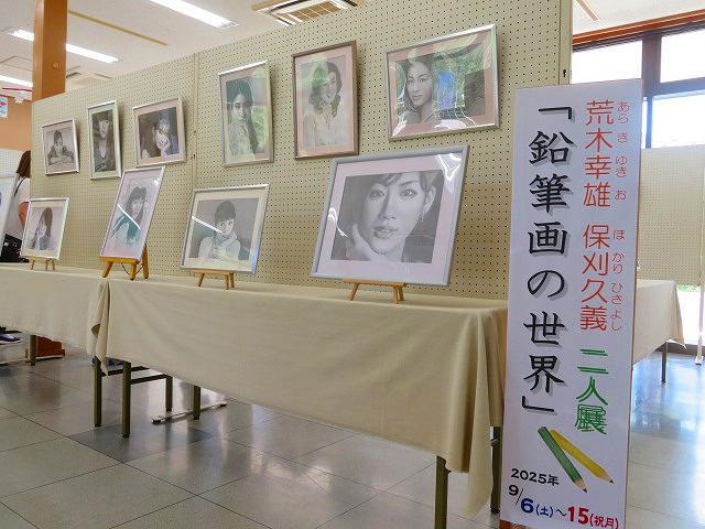 9月前半の展示は  荒木幸雄 保刈久義 二人展 「 鉛筆画の世界 」です。毎回大好評の鉛筆画作品展を今年も開催します!鉛筆のみで描かれた緻密な人物画はまるで写真のよう。今回は可愛い動物画も展示しています♪37点の力作を、ぜひご覧ください!!令和7年9月6日(土)〜9月15日(月)9:00〜17:30