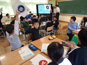 残念ながら全問正解のグループはなかったようですが、楽しく学ぶことができました。自分のために、みんなのために、そして地球上のすべての生物のために、できることに取り組んでいこうとする意識が大いに高まった4年生でした。貴重な機会をいただき、ありがとうございました。(環境クイズの答え:約3杯)