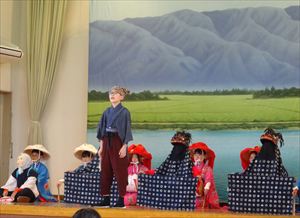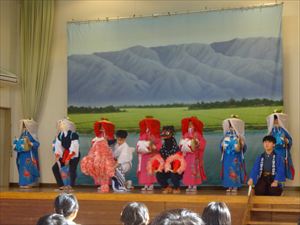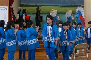 そして、最後は5・6年生による「少年少女五十川獅子踊り」。着付けの指導も入れると4回の夜間練習がありました。お師匠様方から教えをいただきながら、しっかりと仕上げることができました。今回は新しい「ささらのお面」の初お披露目でもありました。