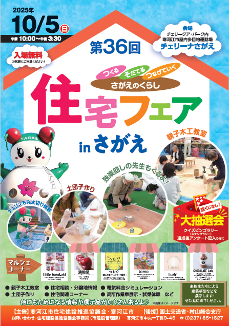 2025年10月5日(日)、寒河江市の「チェリーナさがえ」にて「第36回 住宅フェア in さがえ」が開催されます。