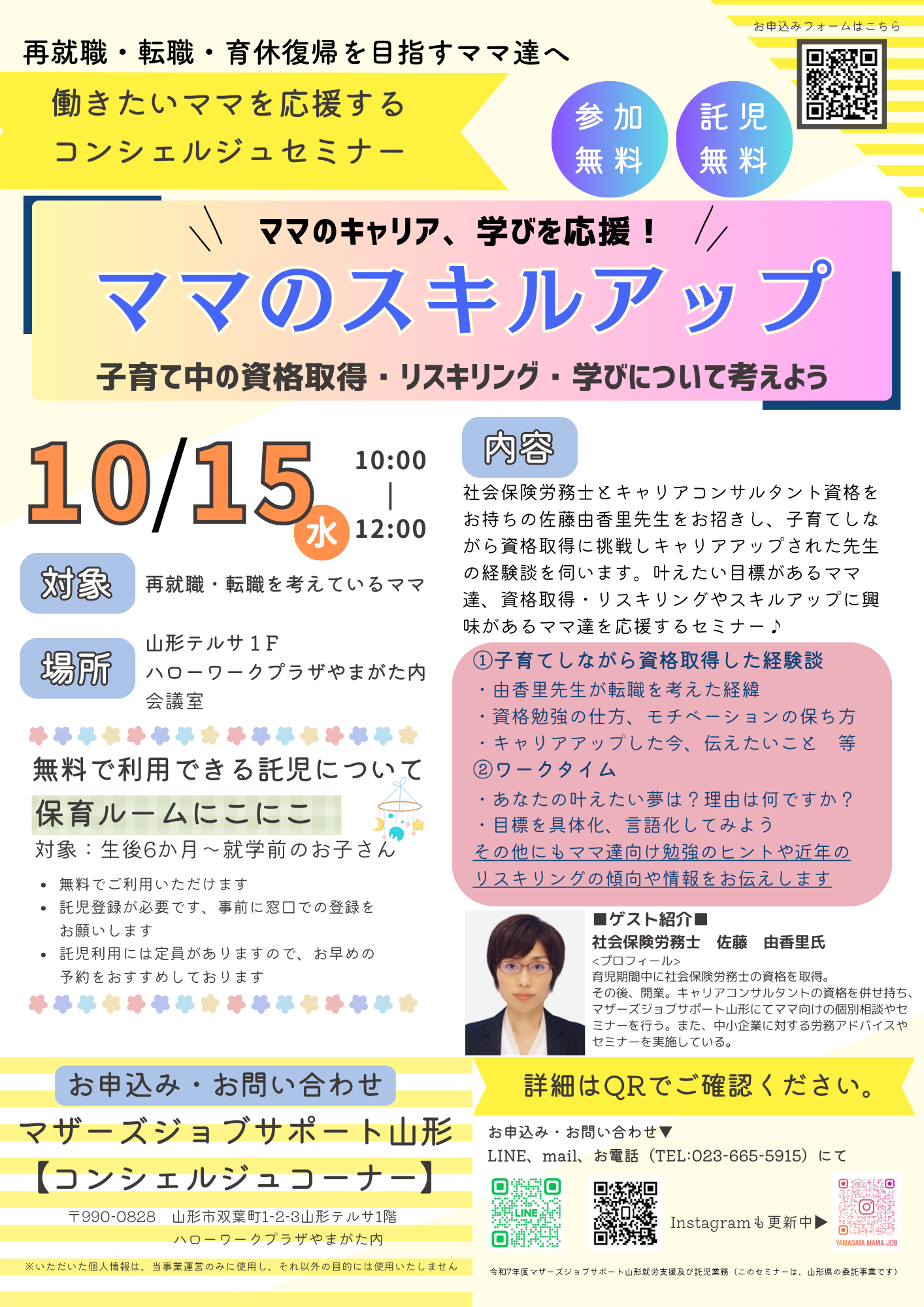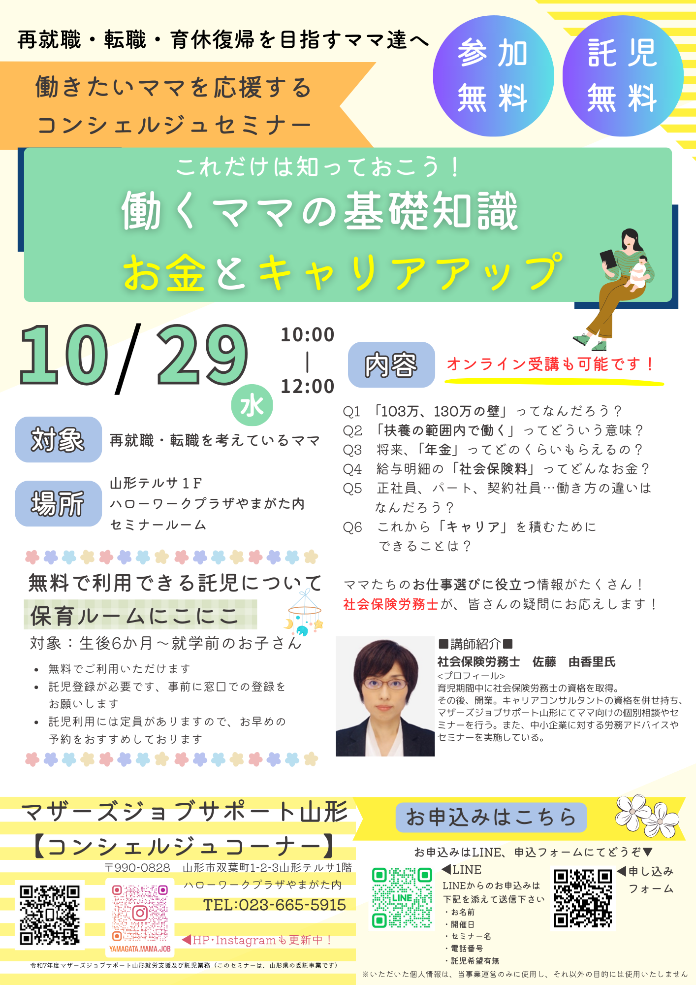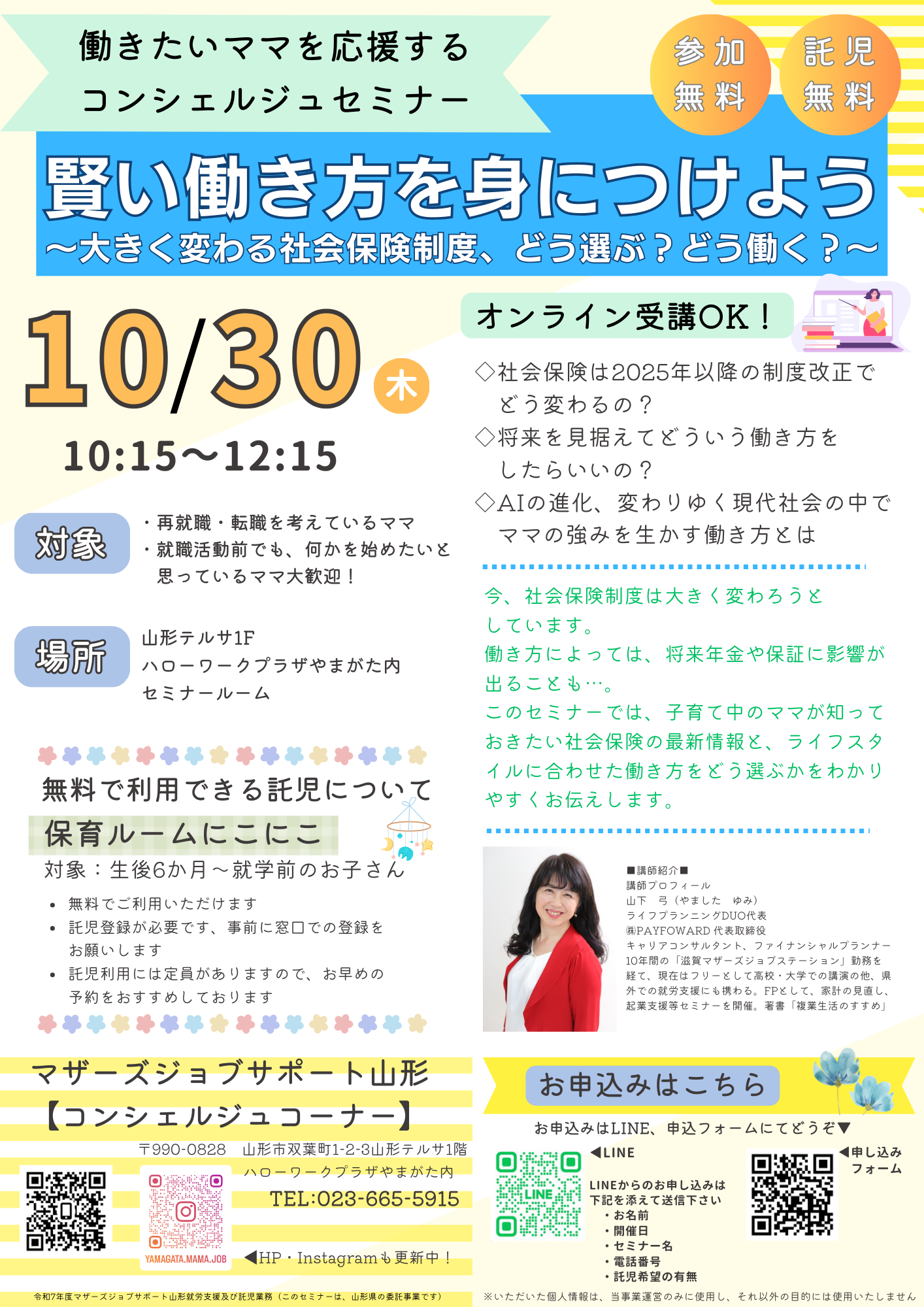 ▼★10月、11月開催一覧★2025/10/03 14:20 (C) マザーズジョブサポート山形
