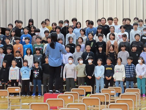 ▼全校合唱練習2025/10/28 13:47 (C) 飯豊町立第一小学校
