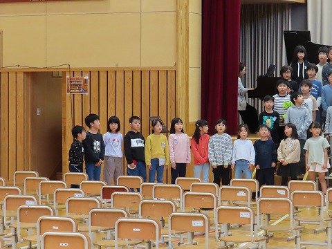 今日は昼休み終了後 ピアノの楠先生をお願いし、全校合唱の練習をしました。席の移動も含めての最終練習でした。