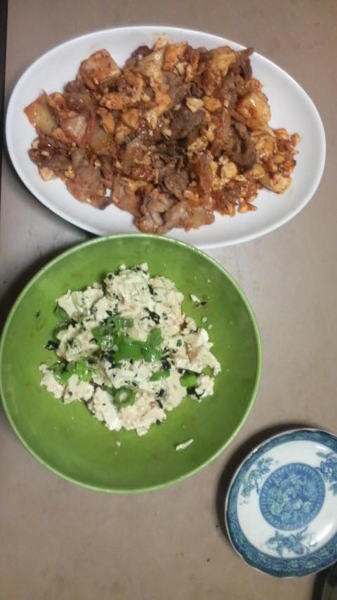 赤いのは、キムチと豆腐と豚肉◎つまみにどうぞ(☆∀☆)
