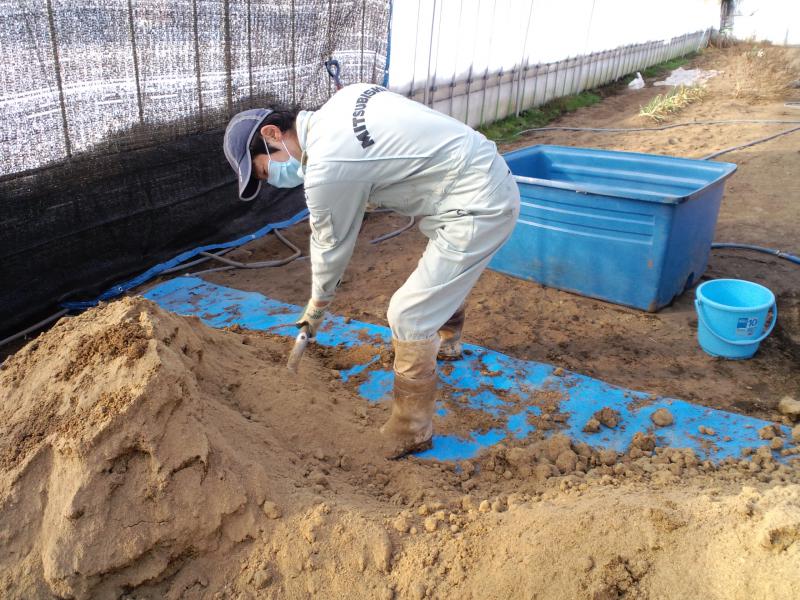 ボカシ肥の仕込み作業をやっています。