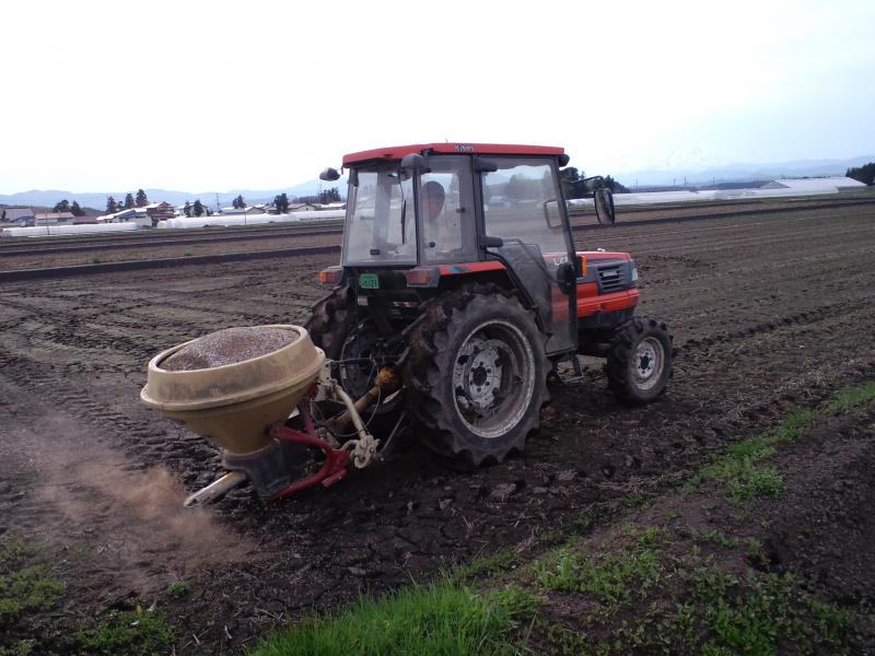 肥料散布は「ブロードキャスタ」という作業機を使うのですが、