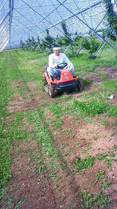 黄君が乗って仕事をしている、十五馬力の乗用草刈機の、メーカーで付けた名称が「草刈マサオ」です。名前も面白いのですが、乗って仕事をするのもアルバイトに来ている人たちの憧れの的のようです。