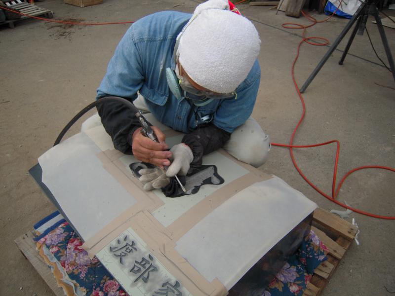 社長自ら手彫り仕上げをやり石塔に魂を込める
