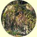 雑木林のこもれ陽が射す中にどっしり座っている姥神。