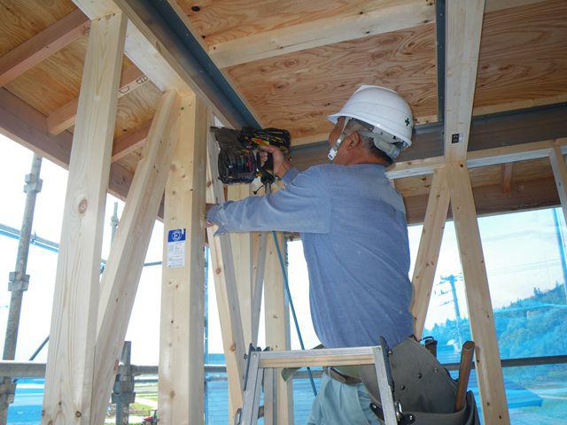 本日は、筋違いの施工に入っております。