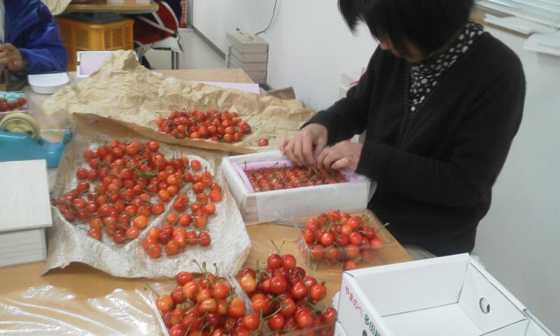 さくらんぼは、なんといっても鮮度が重要なので短期間、短時間で集中的な作業が必要です。収穫から発送まで息のあった連携プレーをそれぞれのポジションで作業している人にお願いする日々がもう少し続きます。