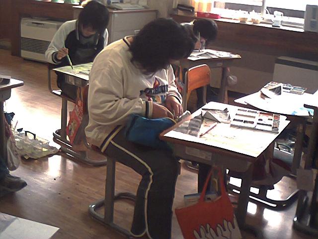 今6年生では学校の様子を絵で表しています。一人一人の学校の思い出の場所を描いています。今日で完成させるつもりです。