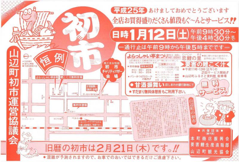 1月12日(土)恒例の「初市」が山辺町で開催されます。