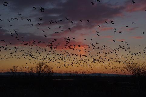 マガンの飛び立ちの観察のため、蕪栗沼を訪れました。早朝、日の出前に、数万羽のマガンが一斉に飛び立ちました。一瞬の間でしたが、至福の時となりました。