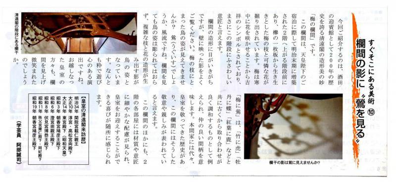 山形新聞酒田専売所の読者に月に1度配布される「まちかどエッセンス」に平成27年5月号から『すぐそこにある美術』というコラム名で、学芸員二名と館長が交互に書かせて頂いております。 最新号がでましたのでお知らせいたします(^^ゞ