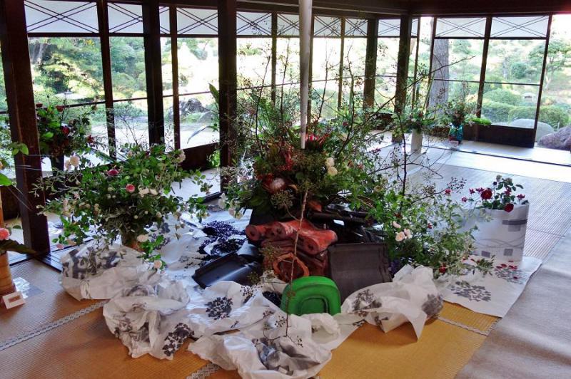 9月3日(土)、4日(日)に、イベント「秘密の花園 in 本間美術館 魅惑の香るバラ展」が清遠閣を会場に開催されました。 このイベントは、酒田市で花屋「ロータスガーデン」を主宰するフローリスト・畠山秀樹氏によって企画され、畠山氏と親交のある書家の高田伊知子氏と静岡県の市川バラ園さんのコラボという形で実現しました。 【清遠閣一階】デモンストレーションで制作された、書家の高田伊知子氏とのコラボ作品。 作品の解説をする、フローリスト・畠山秀樹氏。 普段は公開していない茶室「六明蘆」もバラで飾りました。花器も畠山氏の作です。 【清遠閣二階】 二階の中央には、市川バラ園さんの特徴である香り豊かなバラを活かした作品が。 【ワークショップ】 畠山氏による、苔玉と豆盆栽をつくるワークショップも行われ、子どもから大人まで一緒になって楽しみました。 フローリストの畠山秀樹氏と書家の高田伊知子氏のコラボレーション。清遠閣の彩る畠山氏の作品と、畠山氏の生徒さん達の作品展。そしてワークショップと盛りだくさんの 2日間にわたるイベントは、会場に入りきらないほどの賑わいで大盛況でした! 今回使用しているバラは10種類以上で、すべて静岡県の市川バラ園さんのものです。会場に入れば甘く爽やかなバラの香りに包まれていました。 県内外からたくさんの方にご来館いただき、また久しぶりに本間美術館に足を運んだという地元の方も多かったようです。イベントのお知らせなどはホームページに初めに掲載しますので、時々はチェックしてみて下さい(^-^)