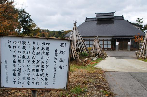 豪族とは、飛鳥時代より前から日本各地にいた有力者のこと、この豪族と呼ばれた人たちは、貴族として政治に参加する人もいれば、そのまま地方に残って、中央から派遣された国司の下で地元を管理したりしたようで、豪族は、大昔からの由緒正しい土地の人のことですが、農民出身の有力者や武士も同じような感じで地方を管理するようになる地方の親分、そんな豪族たちの家は『豪族屋敷』というわけで、実家のある小松から米沢に行く途中の中郡地区にいい感じの屋敷と堀があるところがあります、上杉が会津から米沢に移った時、新発田から来た武士一族とあります、横の田んぼには一族の墓ですか、直江兼続が考案した、米沢藩独特の墓石万年搭が並んでます、万年搭は中がくりぬかれ、側面に穴があけられた形の石の上に、屋根をのせた形で、有事の際に屋根を取り外しバリケードや、洪水の際に土をつめ土嚢となるように考えられたものでした。この地域に万年塔は、まだあちこちに見られますが、だいぶ風化して欠けているようです・・