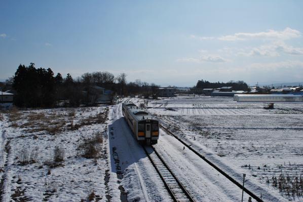 2017年1月10日ほんとに雪が少ないです。今日長井に用事、その帰り、あまりの天気の良さに今泉の陸橋で電車の写真撮りしました、11時01分この時間は米坂線の上りと下り電車が通ります、そのチョット後にフラワー長井線のほうも上りと下り電車が来ます、フラワー長井線の電車はあやめとダリアの花でした、他にもあるのでまた撮りたくなるような”フラワー”です今朝の山形新聞にも写真がありましたね、いい感じです。。
