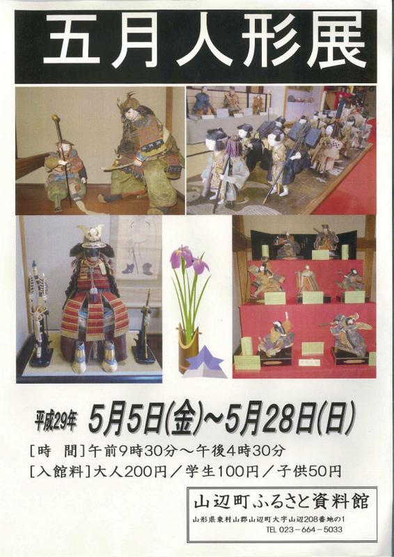 ただ今、ふるさと資料館にて『五月人形展』を開催しています。五月人形は男の子の誕生を祝うとともに、健やかな成長を願い飾られます。ふるさと資料館では歴史を感じさせる鎧や兜、竹田人形等多数展示しています。ここでしか見れない歴史ある五月人形を、ぜひ見にきて下さい(^o^)/ ふるさと資料館『五月人形展』□開催期間 5月5日(金)〜5月28日(日) ※月曜日は休館日□開催時間 午前9時30分〜午後4時30分□入 館 料 大人200円/学生100円/子供50円□お問合せ先 山辺町ふるさと資料館 [TEL]023−664−5033
