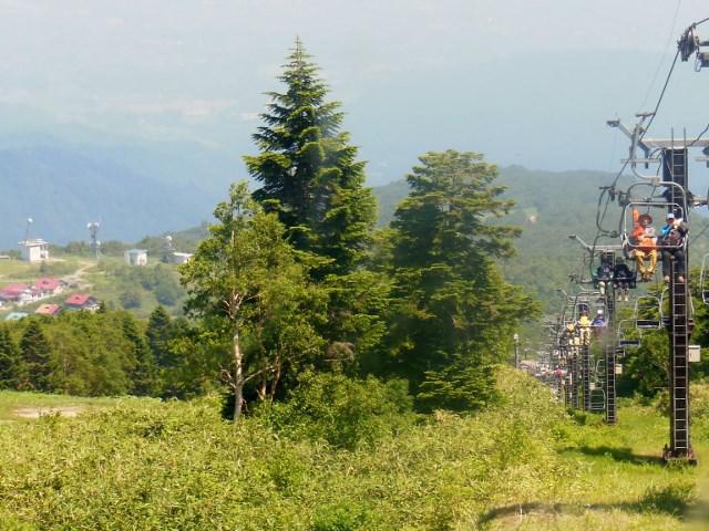 天元台ロープウエイで高原駅につくと”涼しーい”の一言がでます、下界のような蒸し暑さはなくなります。夏は外にいるとじっとしていても汗がじわっと出てくるのですが1350mを超える高原はさらっとして気持ちいいです。サルの群れも気持ちよさそうに動き回っています、高原駅の近くや2番目のシャクナゲリフト付近は細竹が良く出るのでよく見かけますが細竹はもう終わりのようで、ゲレンデの草原内で何かをついばんでるようです・・しかし何を食べてるのか??親について子供が同じように何かをついばんでます、やはり親の背を観て子は育ってるようです・・