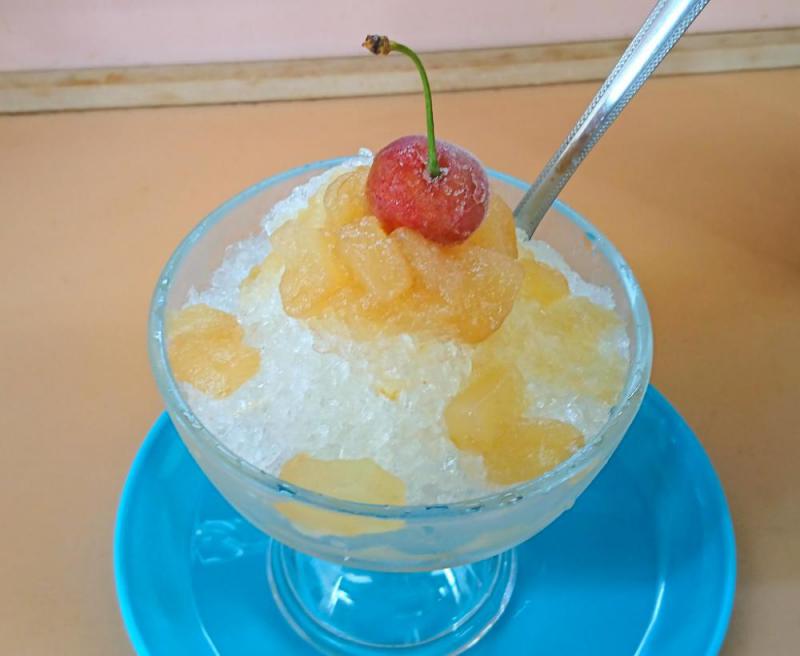 ●おやじラーメンおやじラーメンさんのご当地かき氷は、シンプルなりんごソース。ちょこんと乗ったひえひえの冷凍さくらんぼがワンポイント♪ザクッと粗めの氷と、たっぷりかけられたソースのごろごろ果肉は食べごたえあり。ラーメンのシメに、かき氷でさっぱりしてはいかがでしょう^^ ●紅ほたる紅ほたるさんのかき氷は、りんごとらふらんすの2種類。やわらかめのしゃりしゃり氷に、果実ソースとやまべ牛乳ジャムがたっぷりかけられています。景色を眺めながら、涼しいお部屋でかき氷に舌鼓を打つひと時はまさに至福。お食事の後、お話のお伴にぜひごゆっくり堪能ください♪