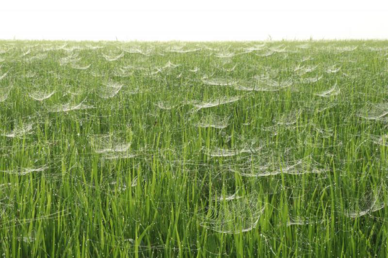 田んぼ一面に花が咲きました!稲の花?いえ、それはまだ。蜘蛛の巣が朝露をまとって、満開の花のよう。シャッターを切ったら、バサバサッと羽音。私に驚いて鴨が田んぼから飛びたち、その鴨に驚いて赤トンボが飛び交い トンボたちは蜘蛛の巣を壊さぬよううまく共存しているよう。 たくさんの生きものが、うちの田んぼに集ってくれていてそんな田んぼに私も生かされているんだなぁとジーンと感じた朝でした。