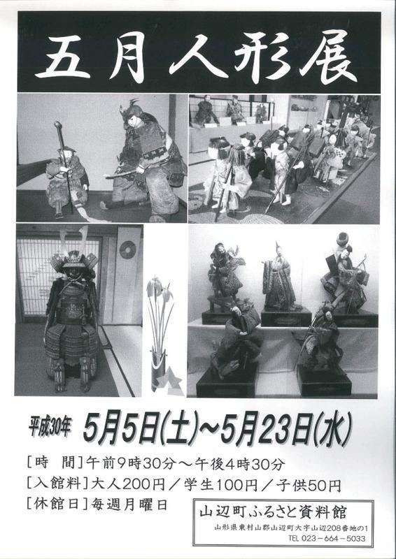 ただ今、ふるさと資料館にて『五月人形展』を開催しています。五月人形は、男子の誕生を祝うとともに、健やかな成長を願い飾られます。ふるさと資料館では、歴史ある鎧や兜、勇ましい人形の数々を多数展示しています。この機会にぜひ、ふるさと資料館に足を運んでみてはいかがでしょうか! ふるさと資料館『五月人形展』□開催期間 2018年5月5日(土)〜5月23日(水) ※月曜日は休館日□開催時間 午前9時30分〜午後4時30分□入 館 料 大人200円/学生100円/子供50円□お問合せ先 山辺町ふるさと資料館 [TEL]023−664−5033