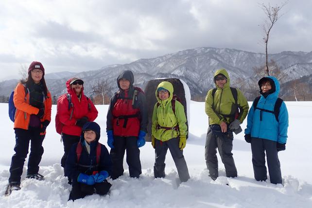 2時間の雪中歩き。今年初です。汗ばみながら「ハイチーズ」