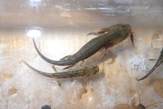 久しぶりの梅雨明けの快晴を楽しもうと家族連れの来園者が多く、子どもたちの好きな動物探しなどをして楽しみました。小川からは「ハコネサンショウウオ」などを捕まえて観察していたようです。