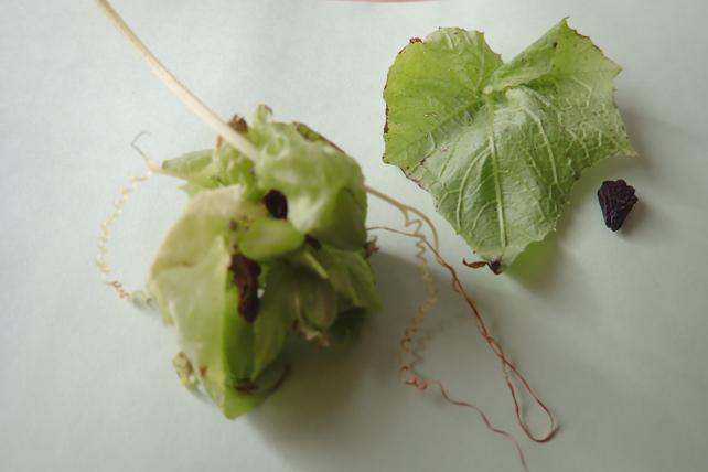 仕草として最初は大型の傘のような葉がでる。cut 1のはいだ葉です。温室の下方部は少し開き、内部で裂果したとおもわれる証として、一個の種子がついていた。