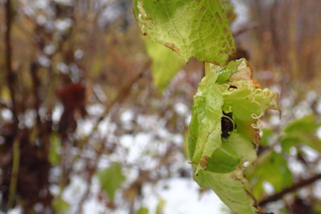 囲い葉は薄く透きとり温室内には裂果、完熟果実確認。温室の底辺は開放されてある。