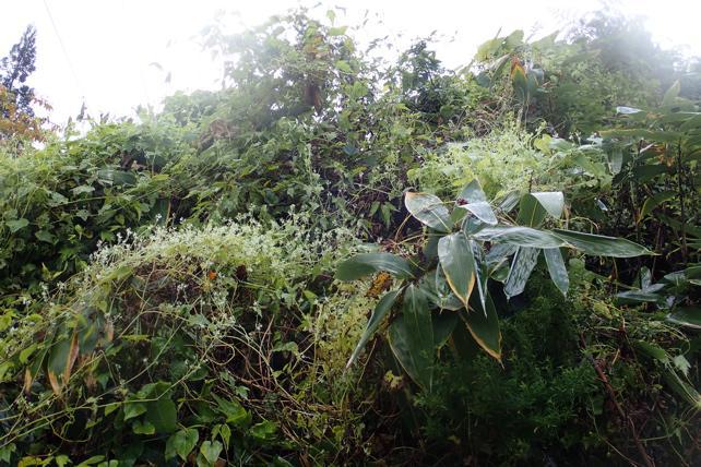 地点A 温室形成による成育が殆どですがここF地点(640m)にはそれがない。11/42人で確認したら雄株群の終わりかけた花序群ガ広がっていた。