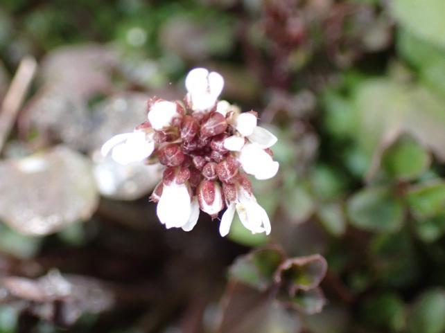 白い花被片4枚。 総状花序。実の付き方などからペンペングサなどとも言われています。あいもの、汁に入れて美味しいです。