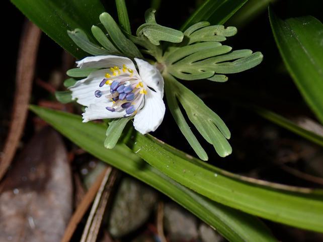 10年も前知人から頂いた鉢植えのセブンソウの種が落ちて地から自然に芽を出すようになった。環境に順応し開花の運びとなった。薮の中なので今日やっと日の目を見た。2月には出ていたはず。清楚で思わず見とれてしまう。