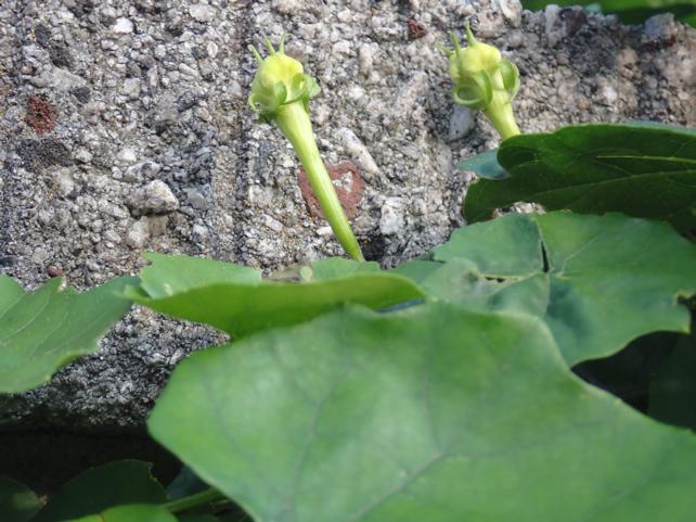 はっきりと雄花の蕾のようですが ミヤマニガウリの雄花総状花序にはどうしても見えません。先端の巻きひげの繊細さは見られません。