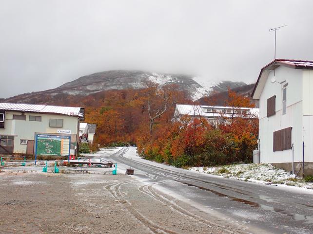 今日は10月のスケッチクラブ。姥沢駐車場(1170m)は積雪5cm.気温11.4℃。