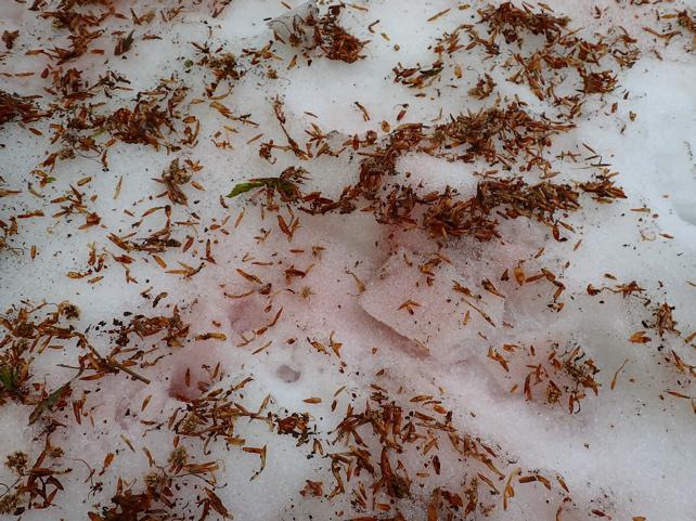 日がな一日、木漏れ日を背に、薄赤い雪上操に寄り添っでのスケッチ、穏やかな日を過ごしました。