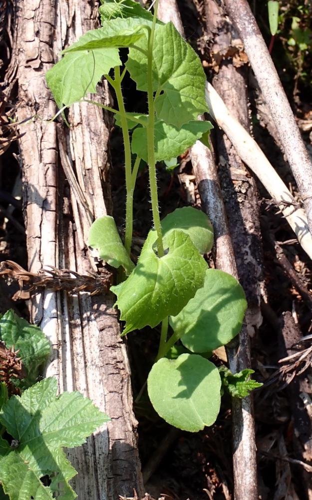 減少しています。短柄で温室を作ります。 本拠地の博物園周辺は残雪のためこれからです。ミヤマニガウリ、昨年の気付きは、温暖化を感知して温室を作らなかったり、底辺空きの温室が観察出来た事です。葉が温、寒の識別が出来る。一考です。