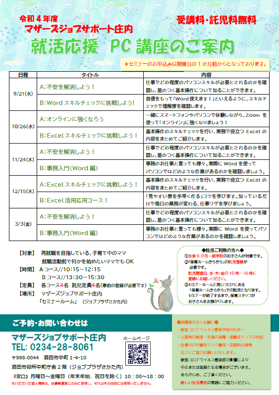 マザーズジョブサポート庄内|あなたの子育てしながら働きたいを応援します!