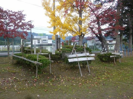 すっかり秋も深まり、まもなく白いものが落ちてくる季節になりました。5日(土)、地域の環境ボランティアの皆様、保護者、そして5,6年生の児童の皆さんに集まっていただき、早朝作業が行われました。生活安全部の方の説明を聞いた後、早速作業開始!環境ボランティアの皆様から、男結びを教えていただける年に一度の貴重な恒例行事です。校舎やグラウンドの周り、わんぱく山周辺のたくさんの樹木を雪囲いしていただきました。また、校内では、普段の清掃ではなかなか手の届かないところの窓ふきをしていただきました。助かりました。そのほか、グラウンドの周りの側溝の落ち葉上げや、グラウンドの落ち葉はきにもご協力いただきました。普段の生活でも5年生が中心となり、ボランティアで落ち葉拾いをしていますが、風が吹けばすぐに落ち葉が積もり、なかなか追いつかない状態でした。でもたくさんの皆様にお力添えいただき、始める前はこのようなグラウンドでしたが、終わってみると・・・見違えるくらいにきれいなグラウンドに生まれ変わっていました。感激でした!!雪囲いのほうも、樹木の高さや形状に応じて、 とてもきれいに、しかも頑丈に囲っていただき、その技にうっとりしながらカメラに収めたところです。これはまさに芸術品です!皆様にきれいにしていただいたこの学習環境で、ますます元気な東根っ子の姿をお見せできるよう、楽しい学校を創ってまいります!今後ともご支援いただきますようよろしくお願いいたします!本当にありがとうございました。