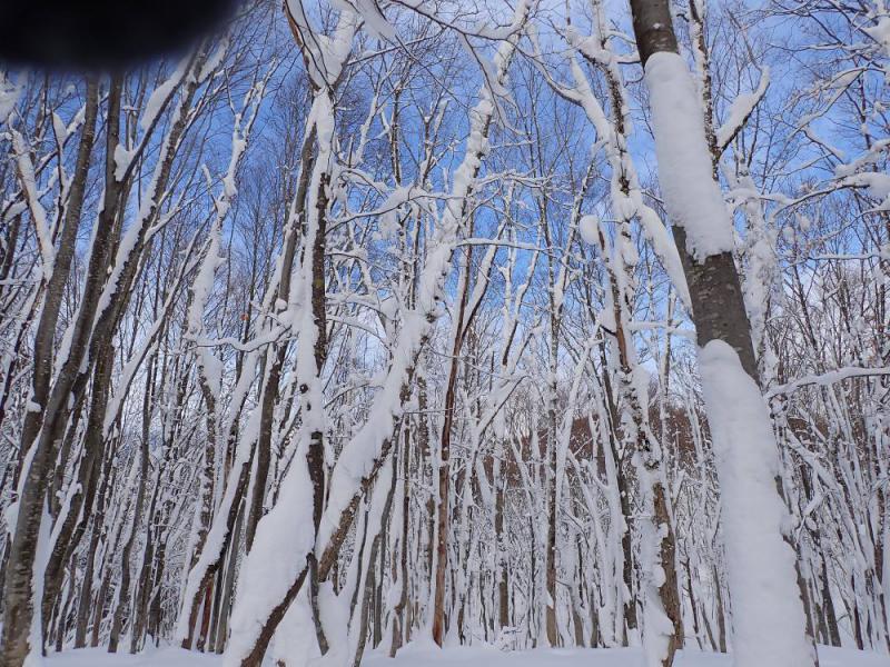 木肌全てに風雪付着し白い妖精がしなやかに舞っています。吸い込ませそうです。