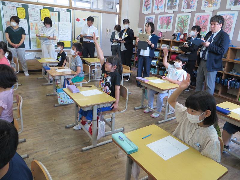6月7日(水)、今年度第1回目の授業研究会を行いました。宮城教育大学、置賜教育事務所、白鷹町教育委員会からも先生方にご来校いただき、2年生と6年生の算数の授業を見ていただきました。2年生の様子です。繰り下がりのある筆算の仕方について考えました。初めは、自力解決をする「ひとり学び」の時間です。思い思いの方法で、試行錯誤を繰り返しながら答えを導き出します。次に、お互いの解き方を交流しながら自分の考えを深める「とも学び」の時間です。同じような方法で解いた者同士集まって説明し合います。後段の全体交流では、一の位がひけない場合でも10の束を1つばらして一の位に置くことで計算が可能であることを確認しました。 6年生です。データの特徴を分析し、多面的に考察する授業です。一人一人がなわとびチームの監督になったつもりで、勝てるチームを選出するために数値の分析を行います。平均値、最大値と最小値、最頻値、散らばり 等、前時まで学習した内容を駆使しながら、一生懸命分析を進めていました。こちらも2年生同様、「ひとり学び」「とも学び」を行いながら考えを深め、全体交流では、担任の先生からの新たな情報を踏まえ、より深い考察を行っていました。目的や条件によって選び方が変わってくることにも気付くことができました。どちらの学年も、真剣に学習に取り組む姿や これまでの学習内容を思い出しながら一生懸命考え抜く姿をたくさん褒めていただきました。 (^_^)今年度は、例年よりも様々な先生方に授業を見ていただく機会が多くあります。学校としてもよりよい授業づくりのため、参観いただいた先生方からのご意見を真摯に受け止め、子供たちに少しでも力をつけられるよう努めてまいります。