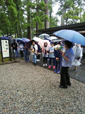 6月15日(木) 12:40瑞巌寺、五大堂の見学です。ちょっと雨が落ちてきましたが、全員元気です!全員集合写真のときは、奇跡的に雨があがりました。