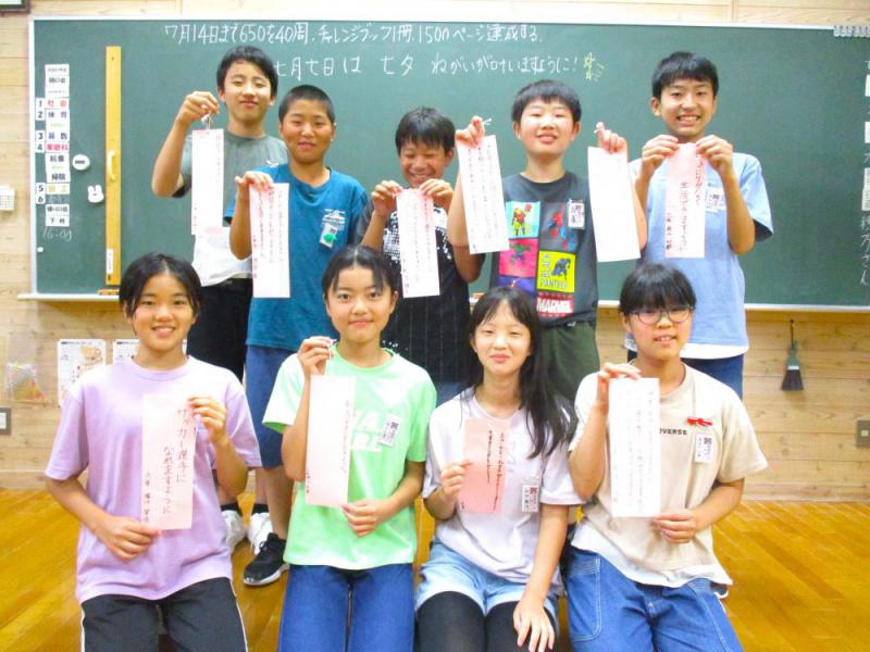 6年生が、短冊に願い事を書きました。それぞれの夢や願いが書いてありました。短冊は教室に飾ってあります。願いが叶うといいですね。