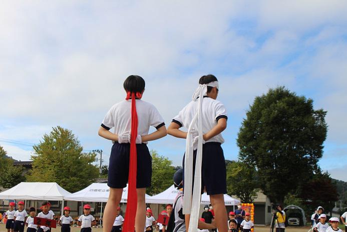9月9日(土)、今日は「東根小学校大運動会」本番です。心配されていた台風の影響はなく、途中からは青空も広がりました。気温の上昇に伴い、熱中症対策を行いながらの進行となりましたが、久しぶりの声出し解禁で、大いに盛り上がった運動会となりました。 【開会式】代表児童、両軍組頭の元気いっぱいの挨拶で、子供たちのやる気が最高潮に高まります。 【徒競走】1・2年生は80m、3〜6年生は100mでの勝負です。一つでも上の着順を目指して、1秒でも速いタイムを目指して、精一杯走りました。ちょっとしたアクシデントで躓いたり転んだりする場面もありましたが、最後まであきらめずに走りぬく姿が立派でした! さらには、そんな友達に赤白関係なく優しい言葉をかけている姿も素敵でした! 【学年団体競技】種目は、1・2年生「まり入れ」、3・4年生「台風の目」、5・6年生「高学年リレー」です。異常な暑さが続いた今年は事前の練習を十分に行うことができませんでしたが、どの学年も友達と力を合わせ、全力で取り組みました! 【応援合戦】特にこの一週間、両組とも応援団を中心に日に日にまとまっていく様子が感じられました。今日はその集大成として、どちらも見ごたえのある素晴らしい応援を披露しました。一人一人の真剣な表情とグラウンド中に響き渡る大きな声が見ている人を圧倒しました。どちらも甲乙つけがたい応援に審査員のみなさんもかなり悩まれたようです・・・ 【閉会式】結果は、優勝:白組、準優勝:赤組、応援賞:白組となりました。勝って喜びを爆発させるのも、負けて悔し涙を流すのも、これまで真剣に取り組んできたからこその姿です。勝負に勝ち負けはつきものです。勝った組はその喜びを分かち合い、 負けた組はその悔しさバネにして、また次の新たな目標に向けて頑張ってほしいと思います。 そして・・・いつも先頭に立って全校生を牽引する6年生のみなさん。この運動会に向けた準備活動及び本番でのリーダーシップも見事でした! 本当にお疲れさまでした! 最後に、準備・後片付けにご協力いただきました役員の皆様、暑い中大きな声援を送ってくださいましたお家の皆様に感謝申し上げます。