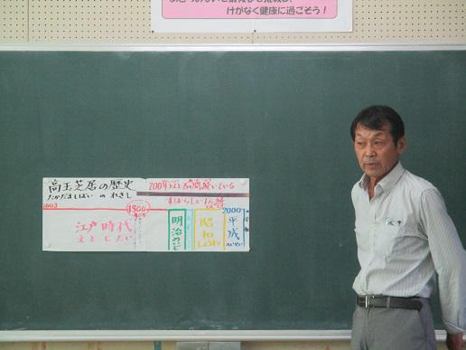 4年生の高玉芝居学習が始まりました。1時間目は、高玉芝居についての歴史や、どのように芝居が作られているか、また劇団についての講義です。 真剣な座長さんの話に、ドキドキしたり、なるほど!と思ったり、こぐわっ子たちは集中して聴いていました。 ちゃんとメモもしながら聴いている姿に、また成長を感じました。今年は、どんな脚本が出来上がるのやら!ちなみに一昨年は「かぼちゃ泥棒」、昨年度は、蚕桑小への転校生が、過去にタイムトラベルして、蚕桑の良さを知ることができたというストーリーでした。これからかっこいい芸名も出来上がってきます。