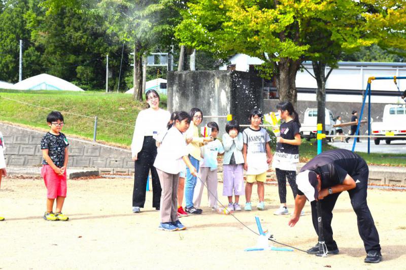 休み時間に、子供たちがペットボトルロケットを飛ばしました。夏休みの公民館事業に参加した際に作成したのですが、熱中症対策のため外で飛ばせなかったものです。やっと飛ばすことができて、子供たちはとてもうれしそうでした。