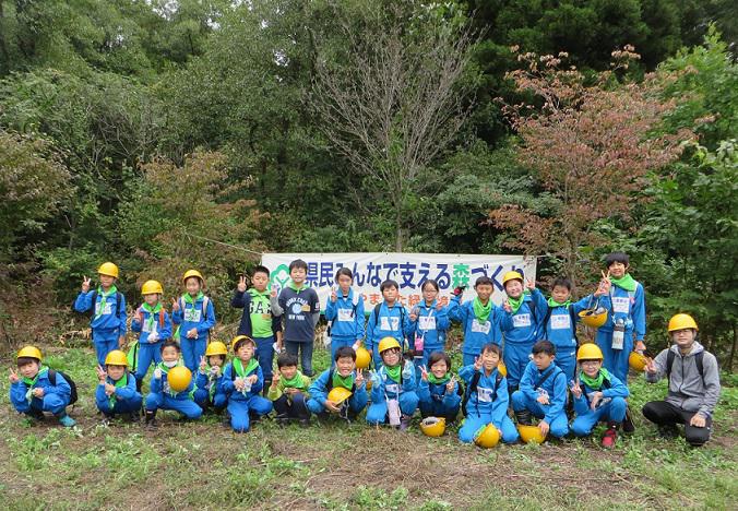 9月30日(土)、4年生が「おきたま森の感謝祭2023」(小国町:宮の森会館他)に参加しました。当日は、同じ緑の少年団活動を行う平野小(長井市)と荻小(南陽市)のお友達と一緒に活動をしました。午前中は、式典の後、近くの山で「森づくり活動」を行いました。後継樹木の育成やバッファゾーン(人と野生動物との共存を図る緩衝地帯)の整備を目的とした除伐です。大人はのこぎりを使って、子供たちは剪定ばさみを使って、雑草木や笹類などを刈り取っていきます。およそ1時間の作業でしたが、一生懸命活動しました。お昼のお弁当です。おいしいなめこ汁もいただきました!さて、お腹がいっぱいになったところで、午後の活動です。前半は、山に入って「動物の痕跡探し」です。熊が食べ残した木の実や冬眠で使用する木の穴を見せていただきました。他にも、珍しい木に関するお話や葉っぱを使った遊び等を紹介いただきました。後半は、「狩猟体験」です。猟銃の扱い方についてお話をお聞きし、実際の猟銃と同じ重さのレプリカを使って撃ち方を教わりました。気分が高まったところで、お祭り等でお馴染みの射的体験もさせていただきました。弾が的に当たるたびに大きな歓声が上がり、大喜びの子供たちでした!(景品としてお菓子も頂戴しました)今回は、自分たちが知っている森とはまた違った、小国町ならではの魅力を感じることができました。子供たちは、お土産に石楠花の苗木もいただきました。ぜひ、それぞれの家庭で大事に育てていただければと思います。