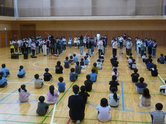 11月7日の全校朝会で、トランペット鼓隊による演奏発表がありました。曲は「世界に一つだけの花」。ゆり園パレードで披露した曲です。1年生から3年生は、今年初めて、生の演奏を聞かせてもらいました。様々な楽器から奏でられる音が見事に調和し、とても素敵な演奏でした。上学年に対するあこがれを強くする会になりました。この曲は11月11日のめざみの里音楽祭でも発表する予定です。