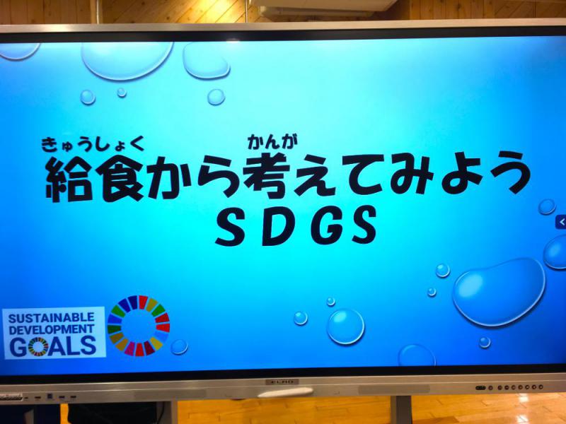 全校朝会で、栄養教諭より講話がありました。「給食から考えてみようSDGs」という内容で、食器をきれいにして返すことが節水につながることや、食べ残しを減らすことがSDGsにつながることを教えていただきました。子供たちからは、「食べ残しをしないように気を付けたい」「もう一口がんばって食べてみようと友達にも言ってあげたい」などの感想が出されました。